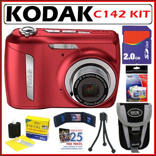 #1: Kodak EasyShare C142 10MP Digital Camera with 3x Optical Zoom and 2.5 Inch LCD in Red + 2GB Accessory Kit Reviews!